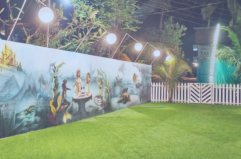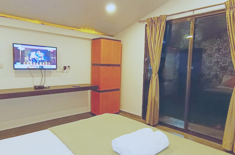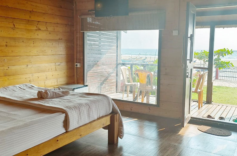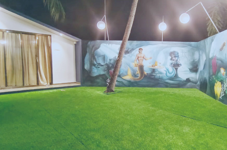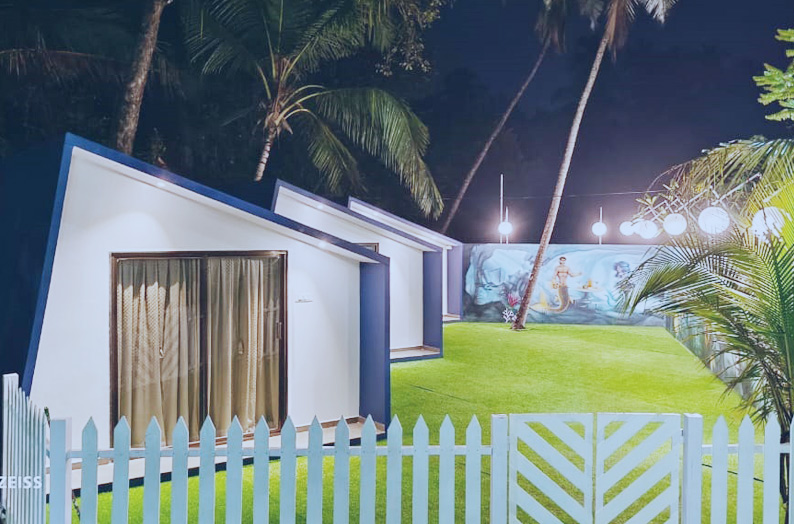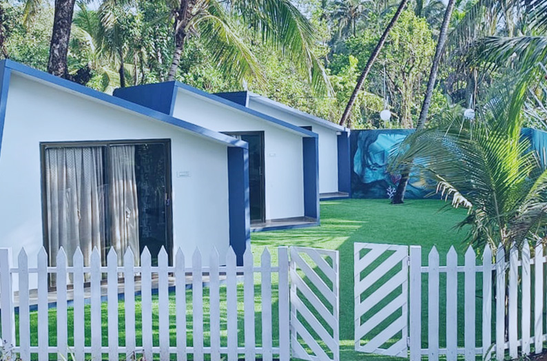 Contemporary designed cozy Modern cottages can be the best option to stay at Klub Khavana for those seeking the utmost privacy, tranquility & natural surroundings. Modern Cottages are equipped with all modern facilities like lights, A.C., 24 hours geyser hot water, inverter power backup & modern washroom. Our Modern Cottages will surely give you the comfort at home at your budget price. These cottages use high standards of hospitality that are some of our prime factors drawing tourist to this popular beach side resort. This Cozy cottages have beautiful surrounding ambience with private lawn and beautiful painted walls with ocean theme.